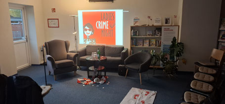 Außer mir waren noch Organisatorin Carolyn Srugies sowie Anja Marschall und Anja Gust mit von der Partie. Jede von uns hatten zweimal die Gelegenheit, jeweils 8 Minuten lang ihre kriminellen Geschichten vorzustellen. Anja Marschall und Carolyn Srugies haben zusammen gelesen, denn die beiden haben einen gemeinsamen Krimi geschrieben: "Der Weihnachtsmannmord", der nicht nur spannend, sondern auch humorvoll ist, so dass während des Vortrags die rund 40 Gäste mehrfach schmunzeln mussten.